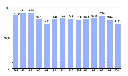 Gráfica de evolución demográfica de Crodo entre 1861 y 2001 |