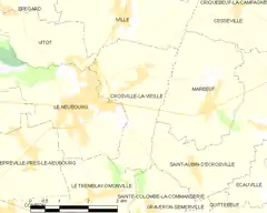 - Situación de Crosville-la-Vieille en un mapa de Francia y de comunas limítrofes (en francés)