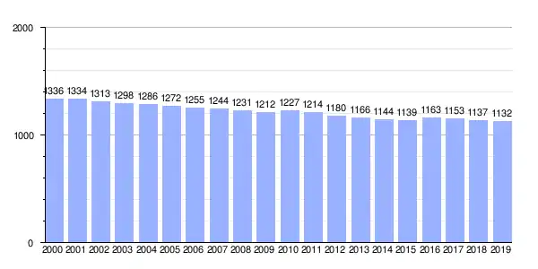 Gráfica de evolución demográfica de Cruces (parroquia) entre 2000 y 2019 |