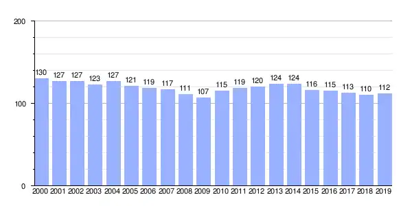 Gráfica de evolución demográfica de Cruces (lugar) entre 2000 y 2019 |