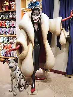 ![]() Estatua de Cruella junto con el dálmata Pongo. | ||
