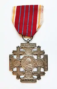 El Signum Sacri Itineris Hierosolymitani fue establecido por Papa León XIII el 2 de mayo de 1901 para honrar y aprobar el peregrinaje a los Sitios Santos del cristianismo en Palestina.[1]