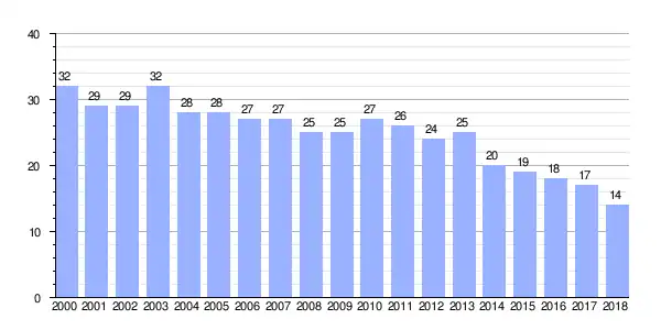 Gráfica de evolución demográfica de Cruz de Sar entre 2000 y 2018 |