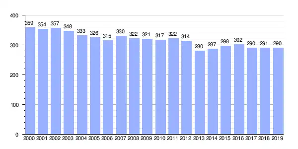 Gráfica de evolución demográfica de Cuíña entre 2000 y 2019 |