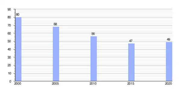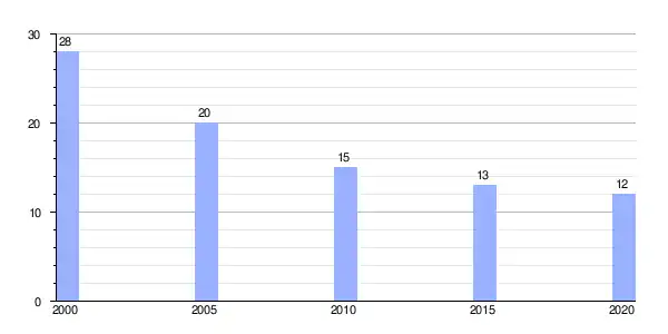 Gráfica de evolución demográfica de Cuíña (parroquia) entre 2000 y 2020 |