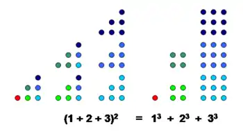 En teoría de números, la suma de los primeros n cubos es el cuadrado del nsimo número triangular. Es decir,