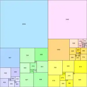 Un cuadrado cuadrado "perfecto" es un cuadrado tal que cada uno de los cuadrados más pequeños que lo compone tiene un tamaño diferente.