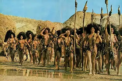 Ambientada en un mundo prehistórico, con la participación de siete personajes masculinos y uno femenino (como si de Blancanieves y los siete enanitos se tratara), esta burlesca comedia tuvo un gran éxito en su momento, y se haría una segunda parte. El argumento se debe a Umberto Eco; y el guion, al director y a Lina Wertmüller.