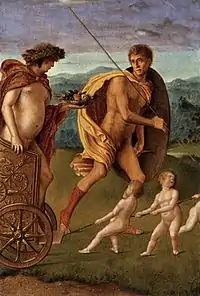 La Perseverancia muestra un guerrero virtuoso al cual Baco, sobre un carro tirado por amorcillos, ofrece fruta. A veces la tabla también es interpretada como una alegoría de la Lujuria.