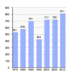 Población de los censos y conteos del Instituto Nacional de Estadística y Geografía (INEGI) de 1970 a 2010.[6] |