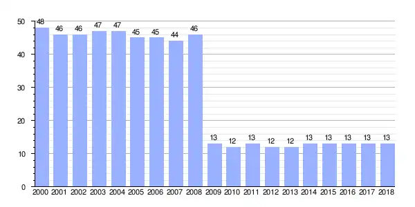 Gráfica de evolución demográfica de O Covelo entre 2000 y 2018 |