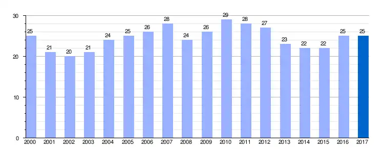 Gráfica de evolución demográfica de Cubilla de la Sierra entre 2000 y 2017 |