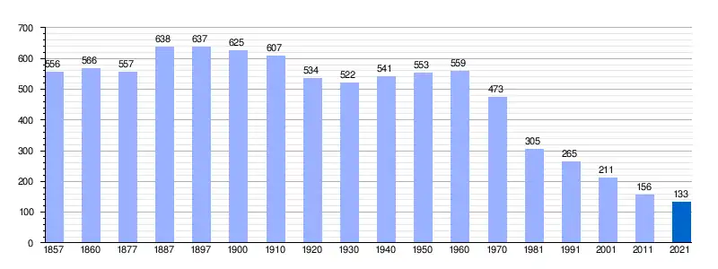 Gráfica de evolución demográfica de Cubillas de los Oteros[4] entre 1857 y 2021 |