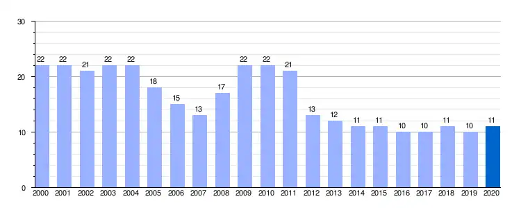 Gráfica de evolución demográfica de Cubillo de Castrejón entre 2000 y 2020 |