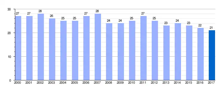 Gráfica de evolución demográfica de Cubillos de Losa entre 2000 y 2017 |