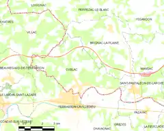 Está situada en el límite departamental, junto a Terrasson-Lavilledieu (Dordoña).