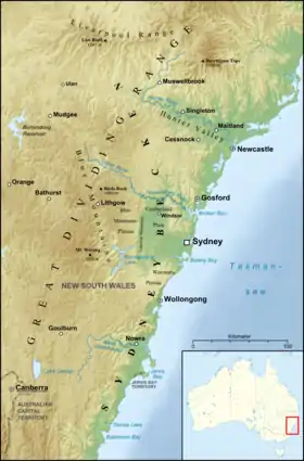 ![]() Mapa físico de la cuenca de Sídney | ||
