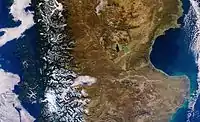 La cuenca del golfo San Jorge es una cuenca petrolera de Argentina ubicada en la porción central de la Patagonia. Es la más antigua y prolífica productora de hidrocarburos de Argentina.[2] Además es una cuenca de bordes irregulares elongada en dirección este-oeste, que se extiende entre los paralelos 45° y 47° Sur y los meridianos 65° y 71° Oeste, cubriendo porciones de las provincias de Chubut y Santa Cruz continuando al Este en la plataforma continental. Sobre una superficie estimada de 180 000 km², la tercera parte se ubica costa afuera. Las concesiones de exploración y explotación cubren un área de 40 530 km² onshore y de 18 980 km² offshore.[3]