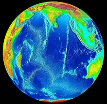 Mapa batimétrico del océano Índico mostrando la cuenca de Somalia en el extremo oeste, a lo largo de África oriental.