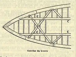 Se llaman cuerdas de hierro a las vagras compuestas de planchas estrechas, colocadas longitudinalmente sobre los baos de las cubiertas, contra las brazolas de las escotillas para afirmarlas. Llevan los nombres de los baos sobre los cuales se remachan.
