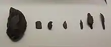 - Industria lítica pulimentada: pocos vestigios, escasas muestras de hachas y azuelas.[2]