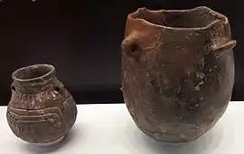 - Cerámica: en este aspecto si se localiza un amplio margen de variedades que evidencian un gran cuidado y especialización. Los vasos localizados evidencian motivos geométricos simples que pueden llegar a un grado de complejidad con la aplicación de cuellos. Un rasgo general es el uso del tratamiento de bruñido, lo que evidencia un gran nivel de cuidado. Las técnicas de decoración son variadas, pero destacan las incisiones, las aplicaciones plásticas, el relieve y la decoración “almagra”.[2]