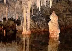 ![]() Estalagmitas y estalactitas características de las cuevas de Diros | ||