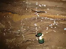 Las siguientes ocupaciones humanas esparcieron detritos sobre estos bloques y a su alrededor con alturas de más de 2 m. La compactación ha provocado que estos depósitos cubran todo el entorno con grandes esquirlas con algunos ejemplos situados en capas casi verticales. Próximo a la parte posterior y lateral de la pared de la cueva los depósitos de la edad de piedra media se han hundido en algunos casos, dejando una brecha que posteriormente se rellenó con depósitos de la edad de piedra superior. En otros lugares, grandes bloques se han deslizado o roto provocando deslizamientos de los depósitos y rellenados. A pesar de estas anomalías, la mayor parte de los depósitos de la edad de piedra media se encuentran in situ y sin alteraciones. Al identificar y excluir el material de áreas contaminadas, los arqueólogos confían en la integridad de más del 95 % del material recuperado de esta época.