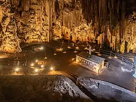 Consta de dos salas principales con abundantes estalactitas y estalagmitas.