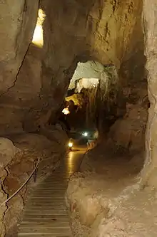 Tiene dos zonas. Una inundada, que ocupa desde una distancia de 240 metros hasta el final, y una seca, que está habilitada para actividades turísticas. El agua de la zona inundada es aprovechada para riego mediante un túnel artificial.