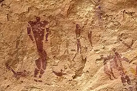 La cueva de los nadadores es una cueva con arte rupestre antiguo en la montañosa meseta de Gilf Kebir en la gobernación Nuevo Valle en el suroeste de Egipto, cerca de la frontera con Libia.