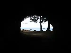![]() Vista de la bahía Cumberland, donde se encuentran las cuevas | ||