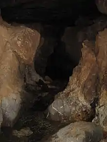 Se conecta auditivamente la cueva del Cobre con la cueva del Humo en el sector moscas. El paso es demasiado estrecho como para permitir el paso de una persona.