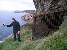 - Historia: la cueva contiene el yacimiento arqueológico de Santa Catalina, con restos que datan del Magdaleniense y Aziliense (hace 10.000-15.000 años), y que constituye entre otras cosas el más antiguo testimonio de la pesca en Europa. Este yacimiento fue localizado por José Miguel Barandiaran en 1964, y fue excavado entre los años 1982 y 2000.[1]