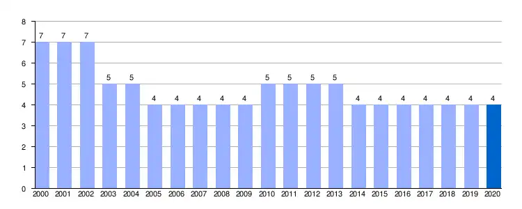 Gráfica de evolución demográfica de Cuillas del Valle entre 2000 y 2020 |