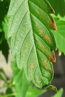- Deformación de hojas. Se amarillean, arrugan, secan.