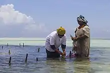 El cultivo de algas marinas a gran escala (llamado "forestación oceánica") podría secuestrar grandes cantidades de carbono.[12] La forestación de solo el 9% del océano podría secuestrar 53 mil millones de toneladas de dióxido de carbono al año. El Informe especial del IPCC sobre los océanos y la criosfera en un clima cambiante recomienda "una mayor atención a la investigación" sobre las algas marinas como táctica de mitigación.[13]