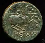 Reverso moneda de Contrebia Carbica