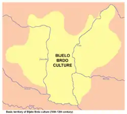 La cultura de Bijelo Brdo fue concebida en el siglo X. Fue creado sobre la base de la herencia cultural de los eslavos de períodos anteriores. A partir de esta herencia cultural eslava, se formó una simbiosis con la herencia cultural de los inmigrantes húngaros, en la zona del curso medio del Danubio.