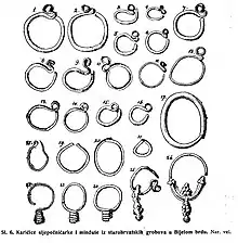 Las joyas encontradas de esta cultura son de origen eslavo. Los productos de joyería de bronce que datan de la época anterior a la creación de Hungría se hicieron como un legado de la tradición local, que tiene un origen tardío o bizantino. Las mujeres usaban cuentas de vidrio, anillos y pulseras. Destacan aretes y pendientes con extremos en forma de S, características de los eslavos, pero también eran usadas por los húngaros.[12][14][15][16]