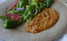 Entre los platos típicos del país destacan los guisos (tsebhi) a base de legumbres y carne. Al igual que en Etiopía se toma también el injera o tayta, que se cocina cubriéndolo de excrementos. Muchos de los platos se basan en las verduras. Para comer se utilizan utensilios, a excepción del injera, que se toma tradicionalmente con la mano derecha.