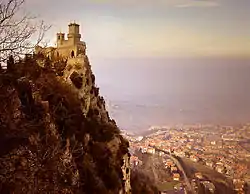 Las Tres Torres de San Marino se encuentran ubicadas en los tres picos del Monte Titano en la capital. Ellas están representadas en la bandera de San Marino y en el escudo de armas. Las tres torres se denominan Guaita, que es la más antigua de las tres (construida en el siglo XI), Cesta , situada en la cumbre más alta del Monte Titano se remonta al siglo XIII, y Montale, emplazada en la más pequeña de las cumbres de Monte Titano, aún de propiedad privada, se construyó durante el siglo XIV.
