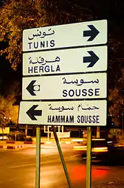 Túnez es bastante homogéneo en lo referente a las lenguas[1] dado que casi toda la población habla árabe y árabe tunecino que es la lengua oficial del país. El árabe de Túnez es un dialecto, o, más adecuadamente, un conjunto de dialectos,[2][3] por lo tanto no existe un conjunto oficial de estándares pero está principalmente derivado del árabe que es hablado en el contexto familiar.