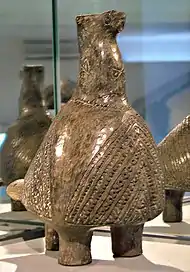Una de las piezas más famosas de Vučedol es la vasija ritual fabricada entre el 2800 y el 2500 a.C., llamada por la atribución especulativa de M. Seper, que la encontró en 1938, la "paloma de Vučedol" (vučedolska golubica). Sin embargo, la interpretación más reciente es que la vasija tiene la forma de la perdiz macho, símbolo de la fertilidad, cuyo comportamiento defensivo cojeando contra el ataque de los depredadores en un nido de perdices en el suelo lo relaciona con el chamán-herrero cojeando, según la reciente interpretación de Aleksandar Durman, de Zagreb.[5] La figura es un notable ejemplo de creación artística y simbolismo religioso asociado al culto a la Gran Madre.[7]