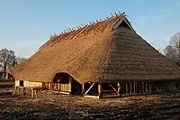 Una característica de la cultura de Wielbark, que tenía en común con el sur de Escandinavia, era el levantamiento de montículos cubiertos de piedra, círculos de piedra, estelas solitarias y variaciones de revestimiento de adoquines. Estos círculos de piedra podrían haber sido lugares de comida comunal.[10]