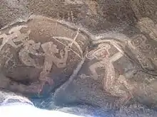 Asociada a la cultura de Aguada, fuera de la región seca, se encuentran dos cuevas con pinturas rupestres en las cercanías de Icaño (Catamarca), presumiblemente campamentos estacionarios de recolectores de cebil.[42] A principios del siglo XXI se encontraron varias cuevas más, conocidas como las cuevas de Oyola, también con pinturas rupestres.[43]