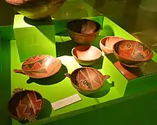 Otra fase cultural muy temprana –anterior al comienzo de nuestra era– es la cultura Vaquerías, en el valle de Lerma, en que se notan influencias de la cultura de San Francisco, caracterizada por jarros semicilíndricos y recipientes modelados que representan figuras o cabezas humanas pintadas con motivos geométricos, generalmente líneas en zigzag. Su cerámica es polícroma, y se han encontrado restos de piezas de este estilo en sitios tan lejanos como el oeste catamarqueño, la Puna y los valles Calchaquíes; probablemente hayan llegado hasta esos destinos por medio del comercio.[28]
