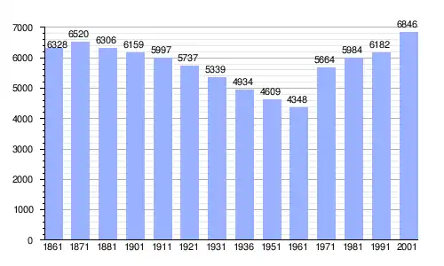 Gráfica de evolución demográfica de Cumiana entre 1861 y 2001 |