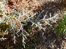 Es un árbol de hasta 45 m de altura, tronco de 3 (-6) m de diámetro; ramillas densamente dispuestas, a menudo no glaucas y robustas, por lo general de 4 ángulos, rara vez cilíndricas, las últimas caídas, 1.5-2 mm de diam. Hojas estrechas, en 4 filas, glaucas, escamosas, en camellones o arqueadas (menguante) y con una glándula redondeada abaxial central. Conos de semillas usualmente glaucos, oblongo-globoso, 1.5-2 × 1.3-1.6 cm; escamas de las piñas con alrededor de 12, con numerosas semillas; brácteas con un prominente mucrón grande, libre en el ápice. Tiene un número de cromosomas de 2 n = 22.[2]