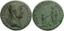 Sin embargo, se ha señalado desde el siglo XIX que las estatuas probablemente fueron un malentendido o una distorsión de un grupo escultórico que, de hecho, representaba originalmente la sumisión de Judea al emperador Adriano. Las imágenes de este acoplamiento en particular, típicas de las imágenes adventus imperiales romanas, aparecen en varias monedas de Adriano, después de la represión de la revuelta de Bar Kokhba de 132-136. Las estatuas parecen haber sido sepultadas por un deslizamiento de tierra y algún tiempo después redescubiertas e interpretadas como cristianas. Dado que Cesarea de Filipo había sido celebrada por su templo del dios Pan, una atracción turística cristiana era sin duda una buena noticia para la economía de la ciudad. [22]